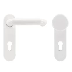Die Hörmann FS Wechselgarnitur D110 Kurzschild PZ Kunststoff weiß kann an Hörmann-Multifunktionstüren aus Stahlblech oder auch an Fremdfabrikaten mit einer Türblattstärke zwischen 45 und 65 mm eingesetzt werden. Durch die bauaufsichtliche Zulassung als Brandschutzgarnitur kann die Montage ohne Bedenken auch an Brand- oder Rauchschutztüren erfolgen.