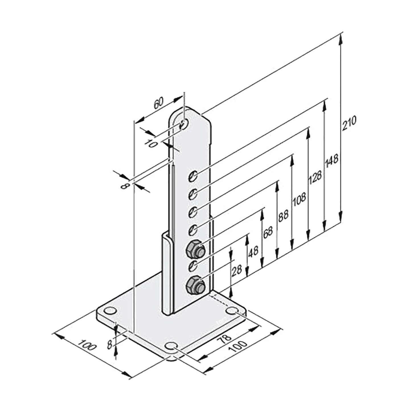 - Abmessung der Grundplatte: 100 x 100 mm